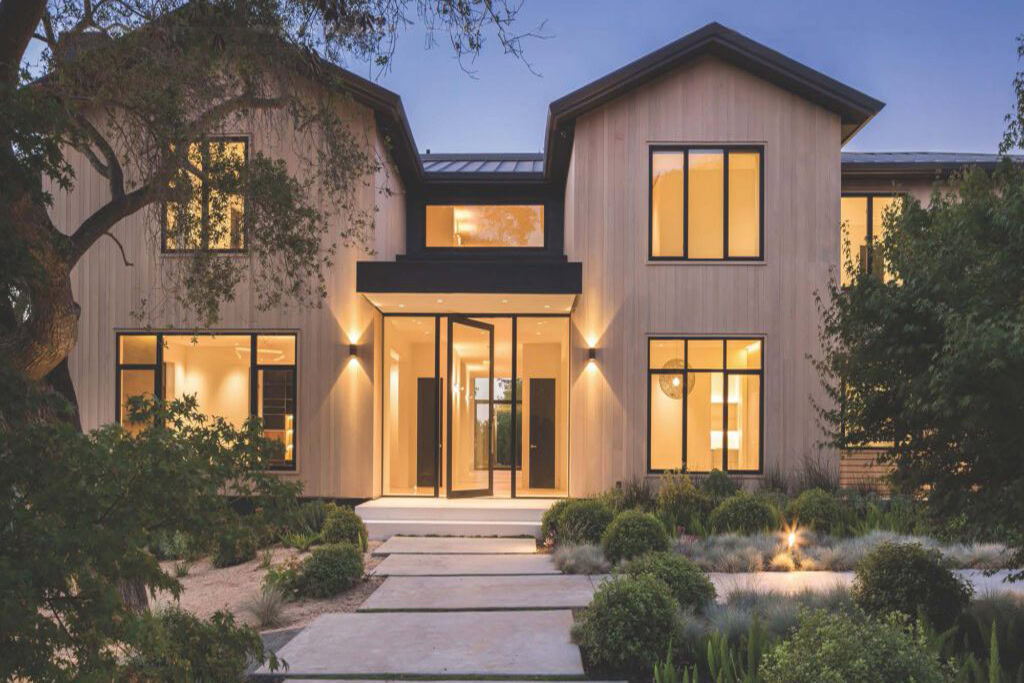 Seaside Escape This home by the beach blends silver grey tones and drought tolerant plants to create a classic Southern California seaside aesthetic. On this corner lot, we designed tall, concrete planters to create privacy and extend the usability of the property. Succulents drape down and around the entrance. Field-grown olive trees were added for