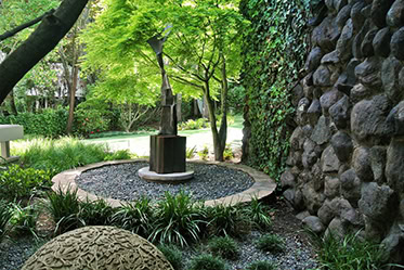 Mid-Century Garden Located on a residential hillside, the Mid-Century Garden overlooks the bay. The landscape design is a beautiful composition of refined materials and planting that complements the mid-century architecture and is sensitive to the ecological, functional, and aesthetic needs of the client. The front hillside planting was overhauled with native sages, grasses, and creeping